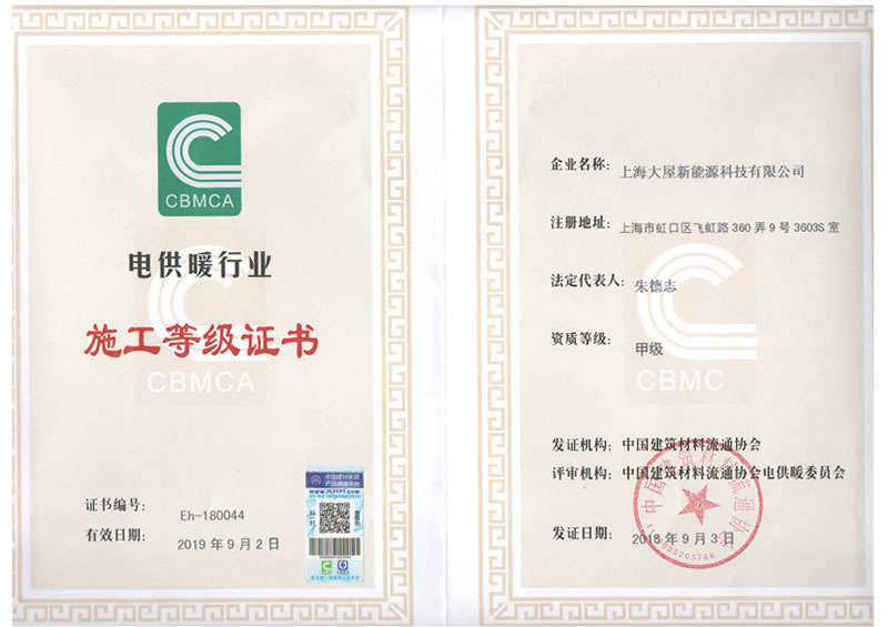 電供暖行業(yè)施工等級證書